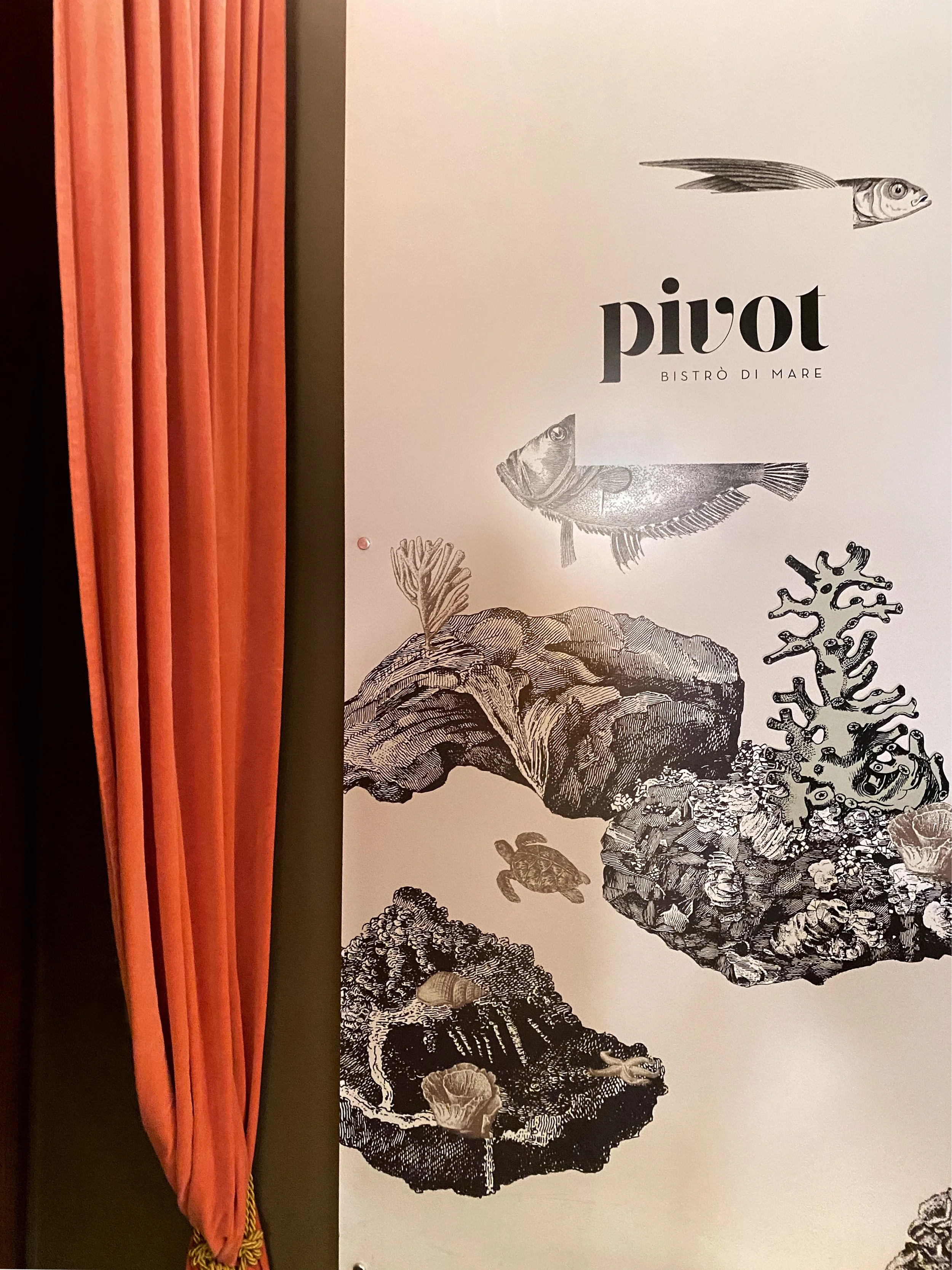 PIVOT Bistrò di mare, dal 2016Immagine coordinata ed elementi grafici di arredo per il ristorante di pesce di Viareggio